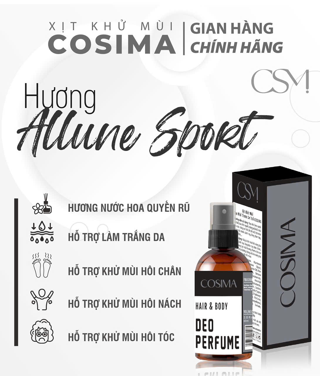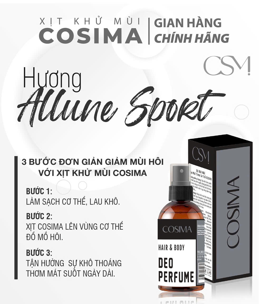 sản phẩm xịt khử mùi hôi cơ thể Cosima, dùng cho nách và chân. Giúp ngăn